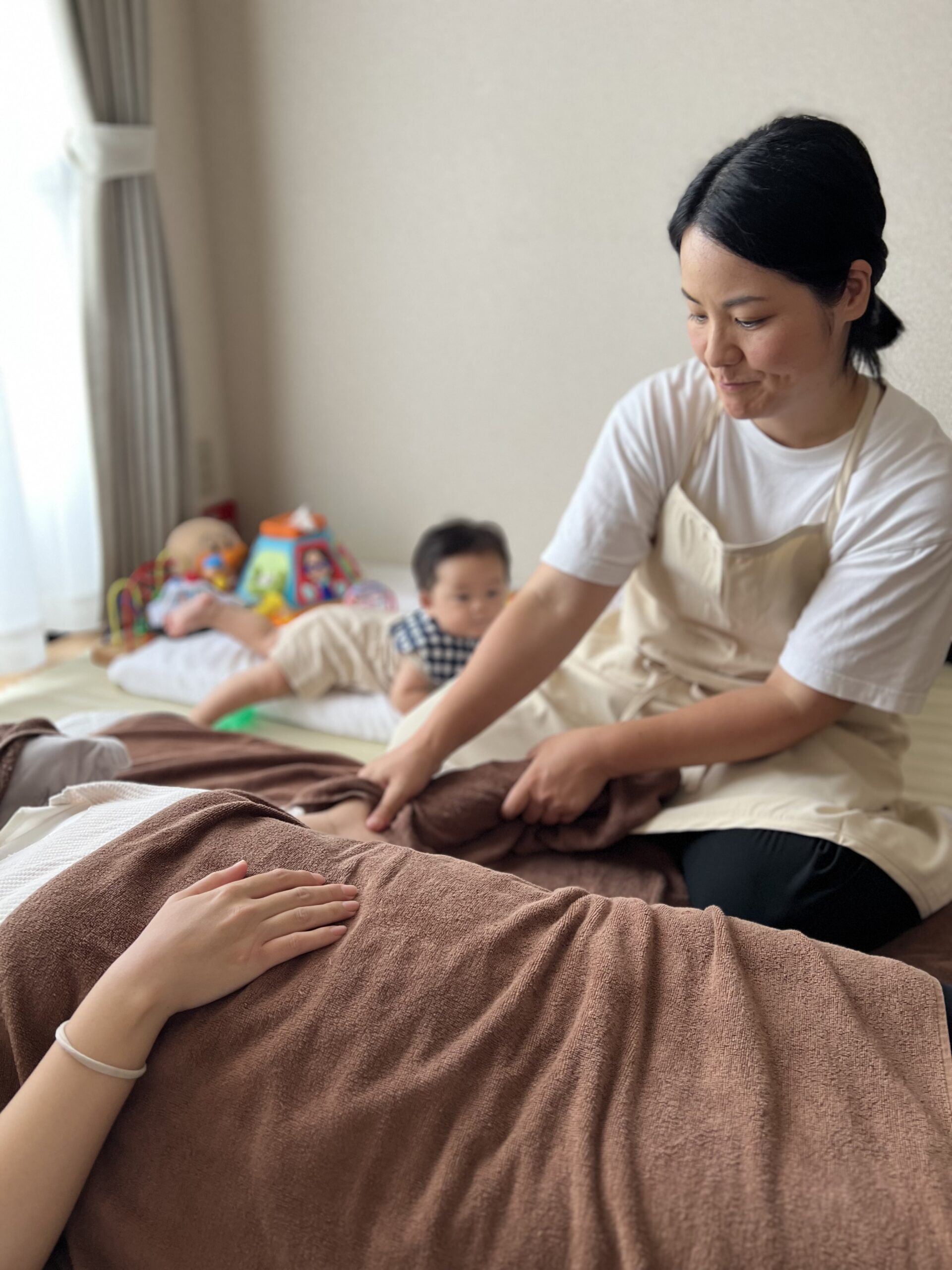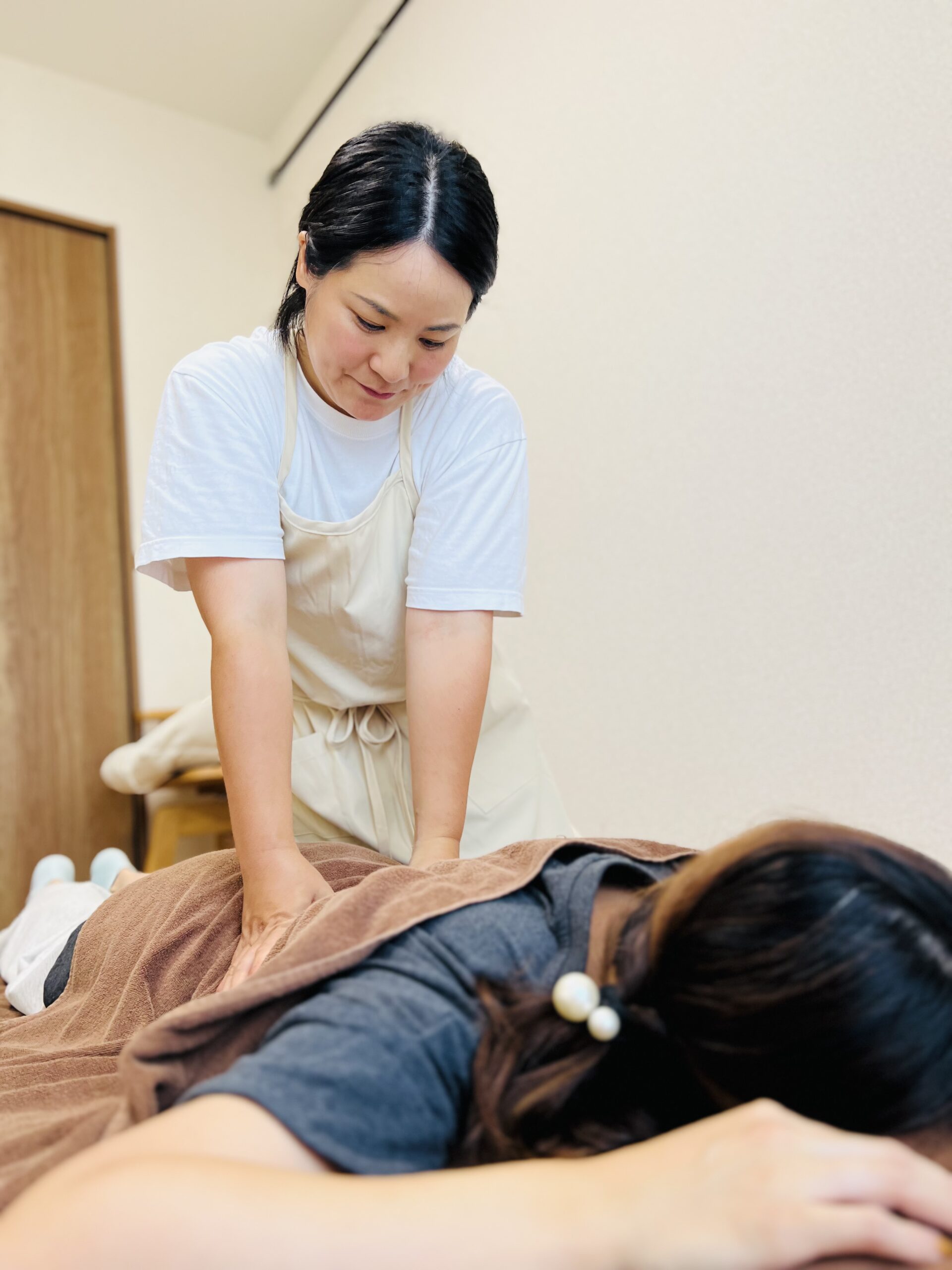 ママの気持ちがわかるママセラピストが、やさしく、あたたかく、からだをほぐしてくれます。